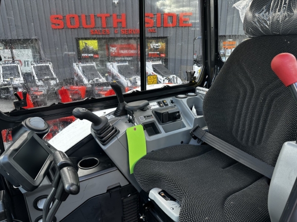 - Cab Deluxe Package: Enclosed Cab with Auto HVAC, Telematics with 3-year Machine IQ Health & Security Subscription, Keyless Start, Bobcat 7" Touch Display with Radio and Bluetooth, Heated High Back Cloth Suspension Seat, Travel Motion Alarm