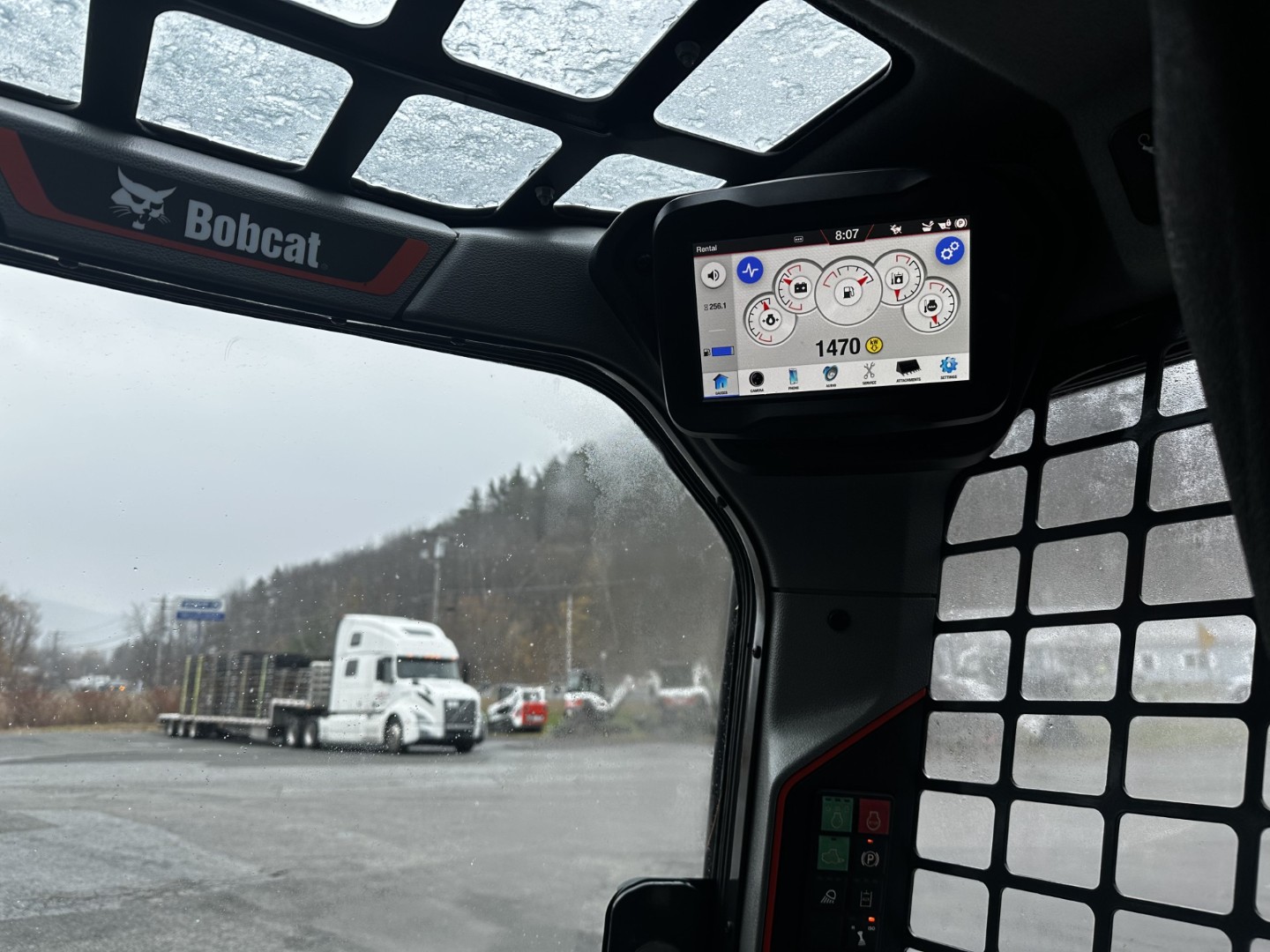 - Comfort Package included: Enclosed HVAC Cab, Radio, Adjustable Heated Cloth Air Ride Seat, Power Bob-Tach, Solid Undercarriage, Instrumentation: Standard 5" Display, Engine Temperature and Fuel Gauges, Hour meter, RPM and Warning Indicators. Includes maintenance interval notification, fault display, job codes, quick start, auto idle, and security lockouts, Premium LED Lights, Keyless Start, Two-Speed Travel, 7-Pin Attachment Control, Dual Direction Bucket Positioning, Rear Camera, Sound Reduction